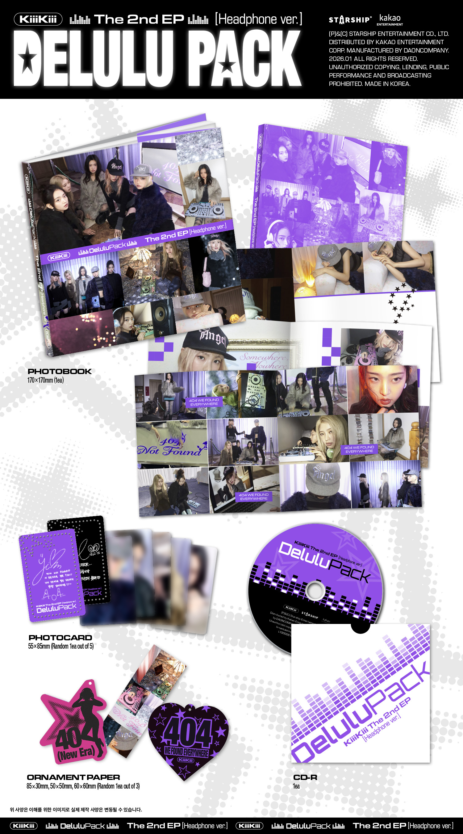 런웨이를 떠올리게 하는 ‘Delulu’로 인트로를 열면, 타이틀곡 ‘404 (New Era)’가 클럽 사운드를 중심으로 키키만의 망상을 폭발시킨다.