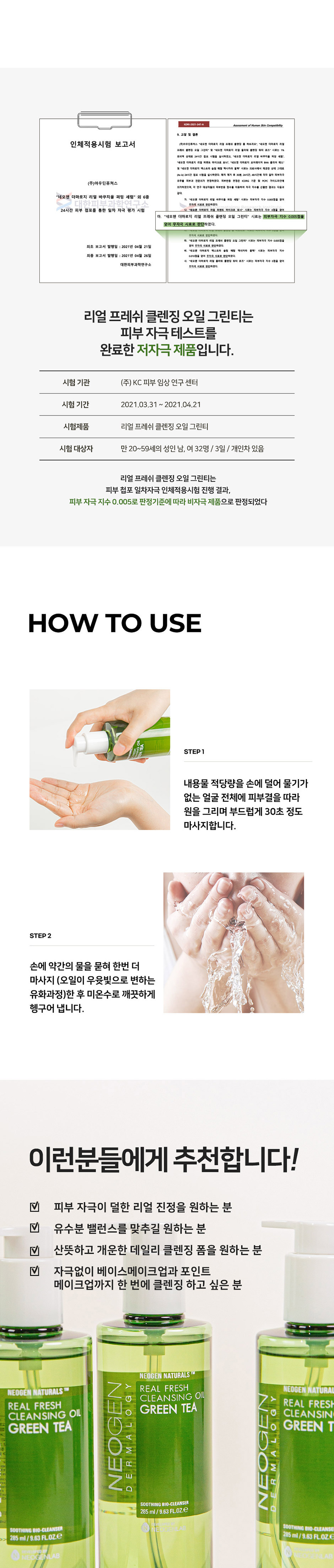 [NEOGEN] REAL FRESH CLEANSING OIL GREEN TEA 285ml
