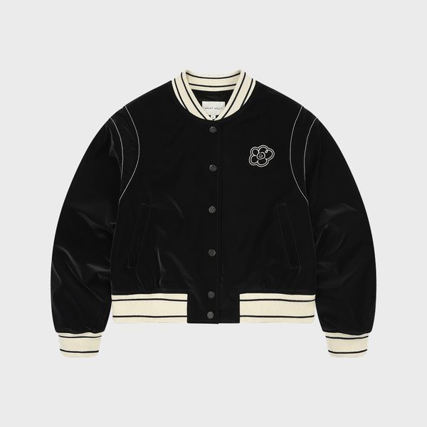 [Wacky Willy] [26SS] Women's Glossy Varsity Jacket Black
