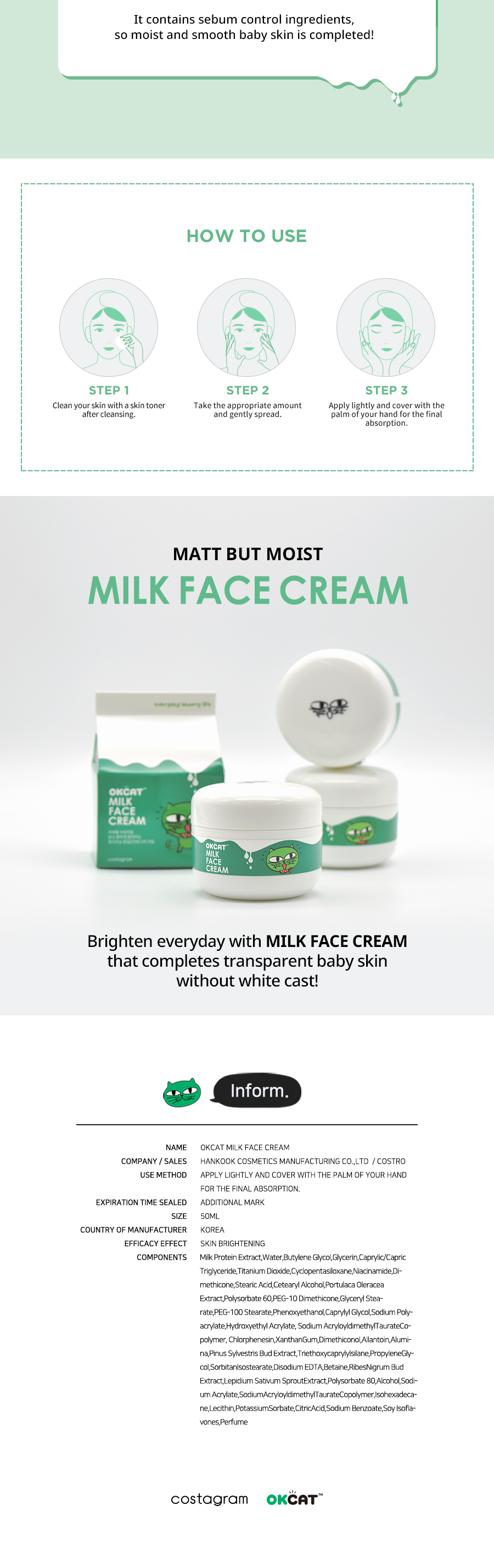[costagram] OKCAT MILK FACE CREAM (2PM :Taec Yeon)