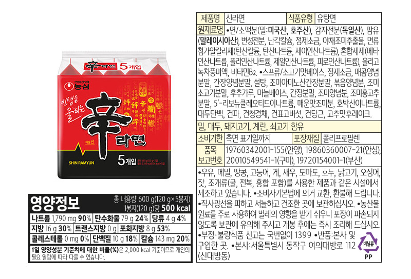 [NONGSHIM] Shin Ramen 120g*5EA
