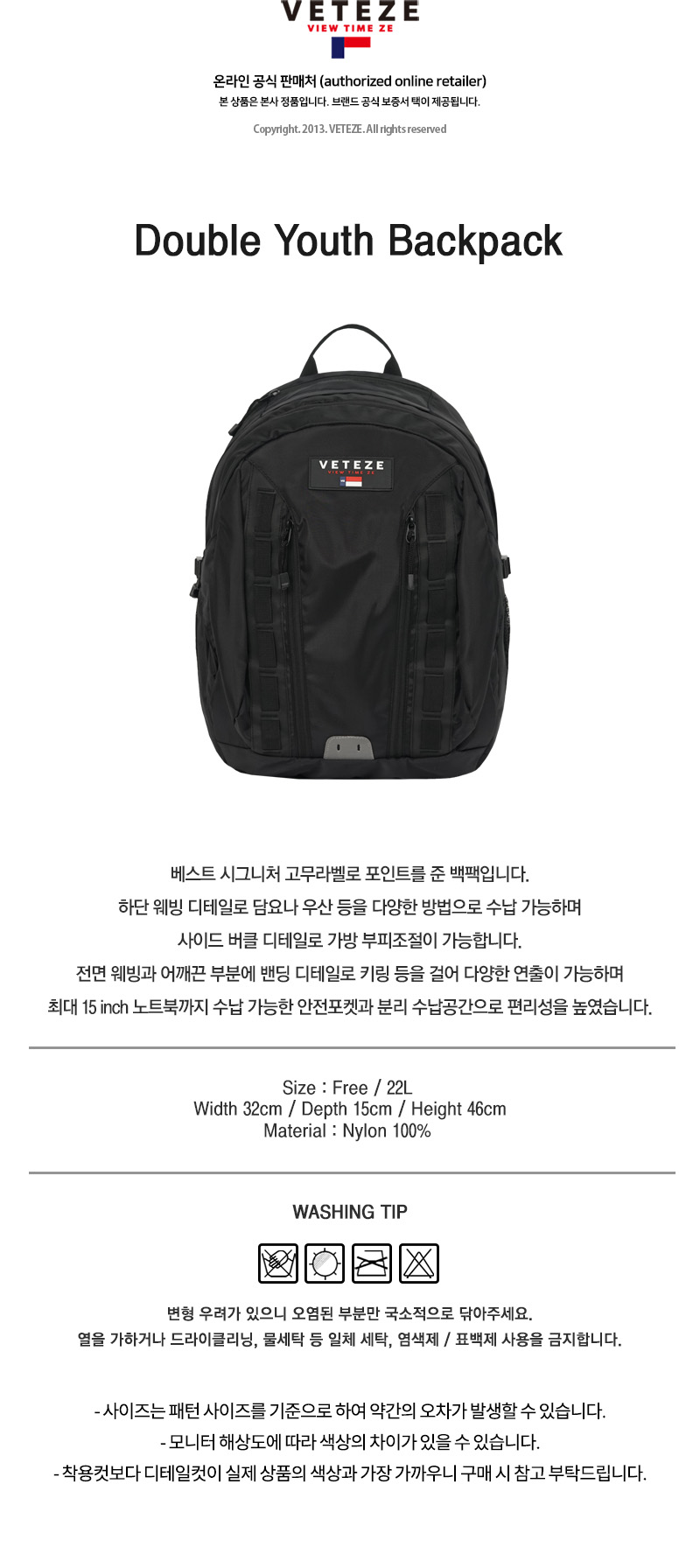 [VETEZE] Double Youth Backpack BLACK